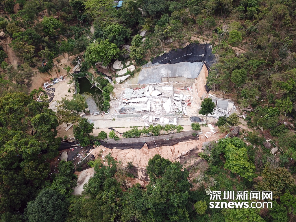 深圳新聞網(wǎng)無(wú)人機(jī)從高空拍下羊臺(tái)山兩處被拆除違法建筑