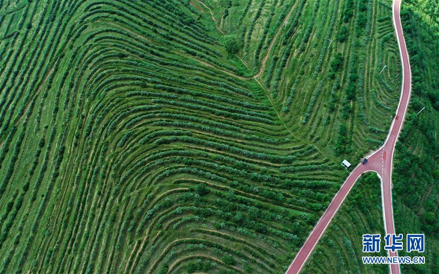 寧夏固原市涇源縣臥龍山公園(7月19日無(wú)人機(jī)拍攝)。新華社記者 王鵬 攝