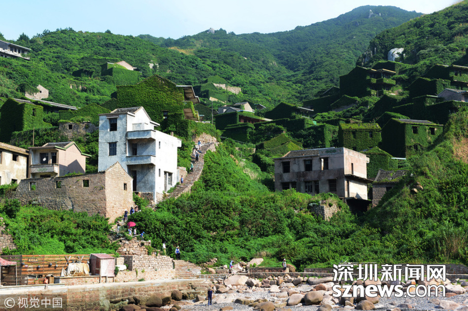 2018年8月8日,浙江舟山,掩映在綠色植被中的“無(wú)人村”,暑假里日均接待游客5、600人,高峰期每天到訪者達(dá)千人。