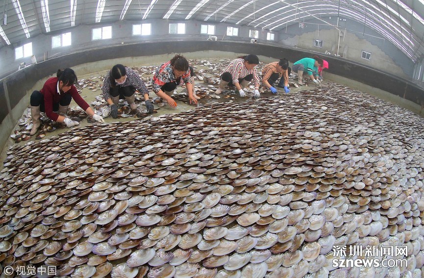 ???? 2018年6月4日,江蘇省連云港市連島一家紫菜育苗廠工人正在進(jìn)行條斑紫菜藻體管理。目前,連云港條斑紫菜全面進(jìn)入育苗培養(yǎng)階段,沿海各地育苗場提升育苗科技水平,培育優(yōu)質(zhì)紫菜苗種。據(jù)悉,連云港紫菜養(yǎng)殖面積達(dá)到15萬畝,紫菜育苗面積近20萬平方米,紫菜養(yǎng)殖成為當(dāng)?shù)貪O業(yè)轉(zhuǎn)型發(fā)展的支柱產(chǎn)業(yè)。