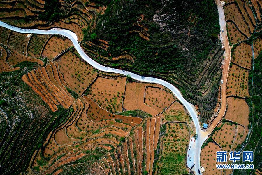 這是5月6日無人機拍攝的涉縣關(guān)防鄉(xiāng)后池村梯田和公路。初夏時節(jié),河北省邯鄲市涉縣山間的梯田綠意盎然,猶如一幅幅美麗畫卷。新華社記者 王曉 攝