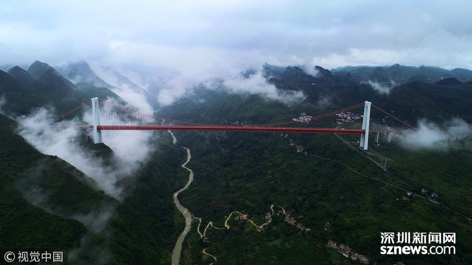 ???深圳新聞網(wǎng)訊 2018年6月26日,一場大雨后貴州省安順市關嶺縣壩陵河大峽谷云霧繚繞,橫跨兩岸的壩陵河大橋在云霧中時隱時現(xiàn),更顯雄偉壯觀。