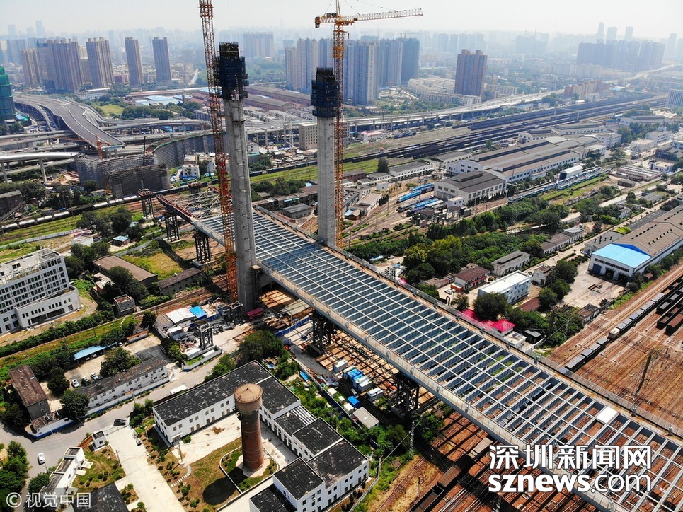 深圳新聞網(wǎng)訊 2018年8月19日,鄭州,跨亞洲最大火車站編組站的農(nóng)業(yè)路高架鄭北大橋工程開(kāi)始最后一輪頂推,長(zhǎng)度為160米,約占總頂推長(zhǎng)度的1/3,頂推重量達(dá)到9000噸。