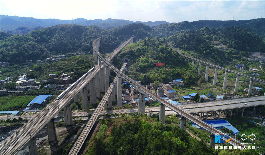 貴州省地處中國西南腹地,全省高原山地居多,因此高鐵建設(shè)的橋隧占比較高。在貴陽市烏當(dāng)區(qū)新添寨,高鐵滬昆線、貴廣客運(yùn)專線、貴開城際客運(yùn)專線的隧道和橋梁交織在一起,形成“五洞五橋”并行,形似“五龍出?!钡膲延^景象(3月29日攝)。新華網(wǎng)盧志佳 攝