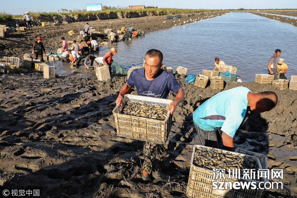 緊挨著黃海的大片養(yǎng)殖區(qū),因?yàn)橐粭l濱海大道,被自然劃成南北兩個(gè)部分。挖蟶人從四面八方趕來(lái),或集體包車(chē)、或自駕摩托。這些機(jī)動(dòng)車(chē)密密地??吭跒I海大道一側(cè),綿延數(shù)公里。