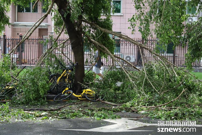 在蓮花北村靠近北環(huán)中學的小路,記者注意到拉起警戒線,有多株樹木經不住大風考驗,已投降就地倒下。