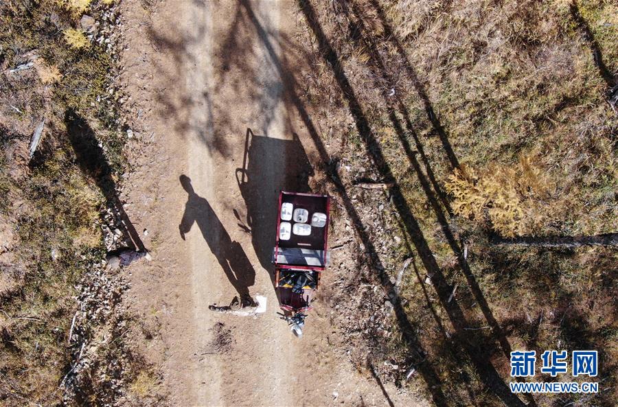 9月18日,在內(nèi)蒙古大興安嶺根河林業(yè)局約安里林場(chǎng),林場(chǎng)職工在河套取生活用水(無(wú)人機(jī)拍攝)。新華社記者李任滋攝