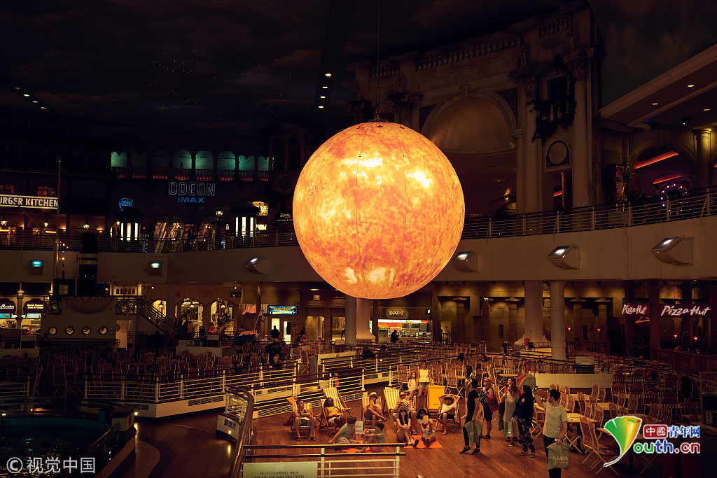 研究表明,五分之四的人在晴朗天氣里會(huì)感覺到更幸福,Intu根據(jù)這項(xiàng)研究結(jié)果打造了這樣一個(gè)人工“太陽(yáng)”,希望能改善顧客們購(gòu)物時(shí)的情緒。