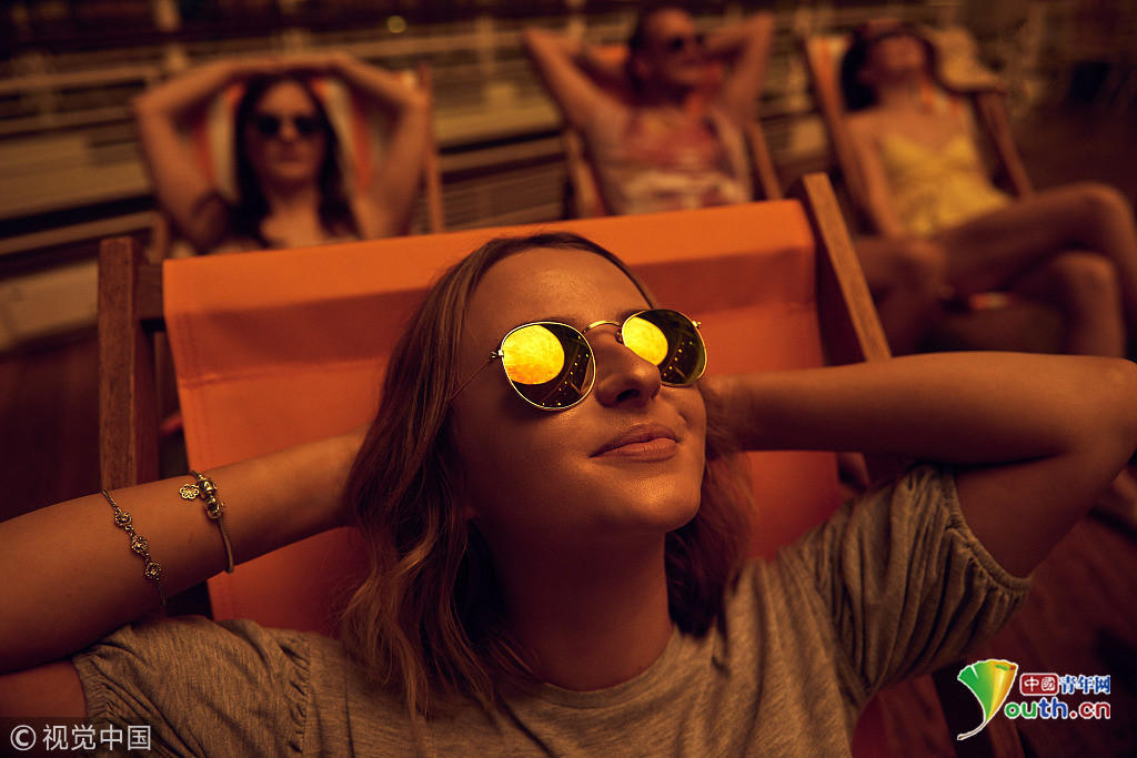 當(dāng)?shù)貢r(shí)間2018年9月18日,英國(guó)曼切斯特,顧客們?cè)谔乩5沦?gòu)物中心的一個(gè)巨型的“太陽(yáng)”下享受室內(nèi)日光浴,感受英國(guó)未完的史上最熱夏天。這個(gè)人造“太陽(yáng)”的亮度相當(dāng)于1.2萬(wàn)個(gè)燈泡。圖片來(lái)源:視覺中國(guó)