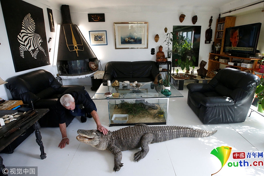 中國(guó)青年網(wǎng)北京9月21日電 當(dāng)?shù)貢r(shí)間2018年9月19日,法國(guó)67歲的法國(guó)男子Philippe Gillet與400多只爬行動(dòng)物生活在一起,有鱷魚(yú)、蜥蜴、眼鏡蛇等等。
