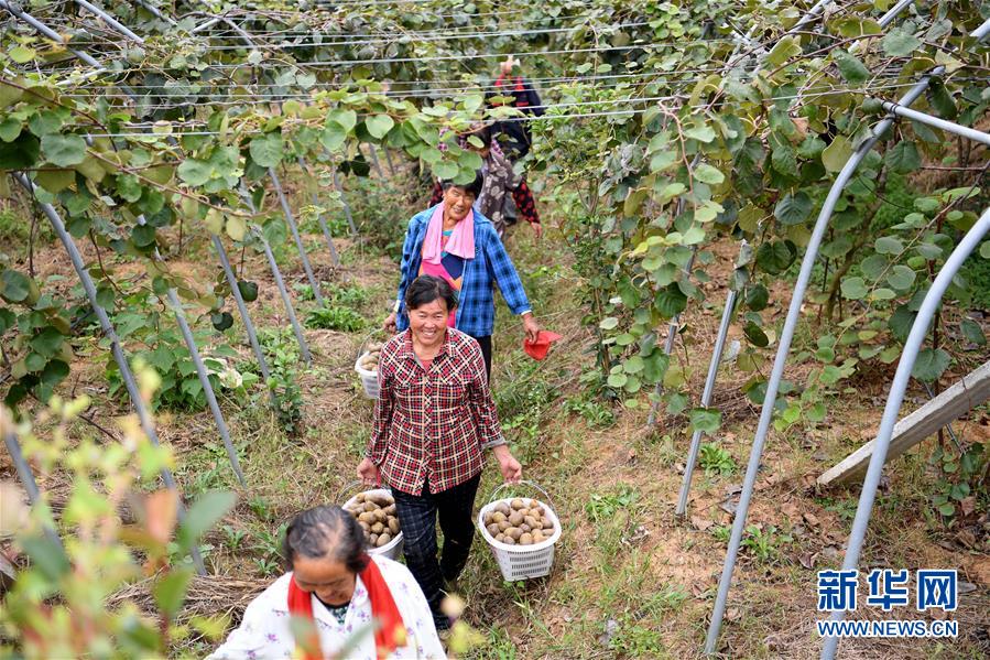 9月25日,在肥西縣銘傳鄉(xiāng)劉老圩獼猴桃種植基地,農(nóng)民在采摘獼猴桃。新華社記者劉軍喜攝