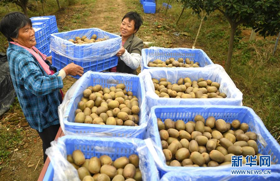 9月25日,在肥西縣銘傳鄉(xiāng)劉老圩獼猴桃種植基地,農(nóng)民裝運剛采摘的獼猴桃。 新華社記者劉軍喜攝
