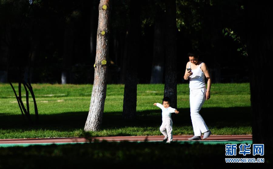 9月25日,一名家長帶著孩子在湘江公園內(nèi)游玩。 當(dāng)日,哈爾濱市湘江公園正式開園迎客。這個(gè)集休閑、健身、娛樂、觀賞于一體的多功能都市公園由高爾夫球場改造而成,免費(fèi)對市民和游客開放。 新華社記者 王建威 攝