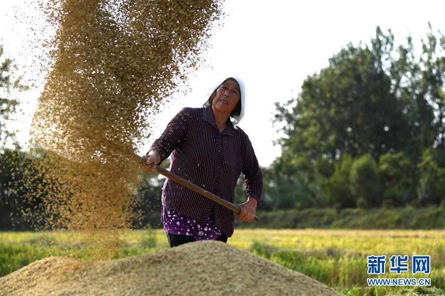 正值秋收時(shí)節(jié),安徽省鳳陽(yáng)縣小崗村水稻陸續(xù)成熟,進(jìn)入收割期。當(dāng)?shù)剞r(nóng)民利用晴好天氣搶收水稻,確保顆粒歸倉(cāng)。