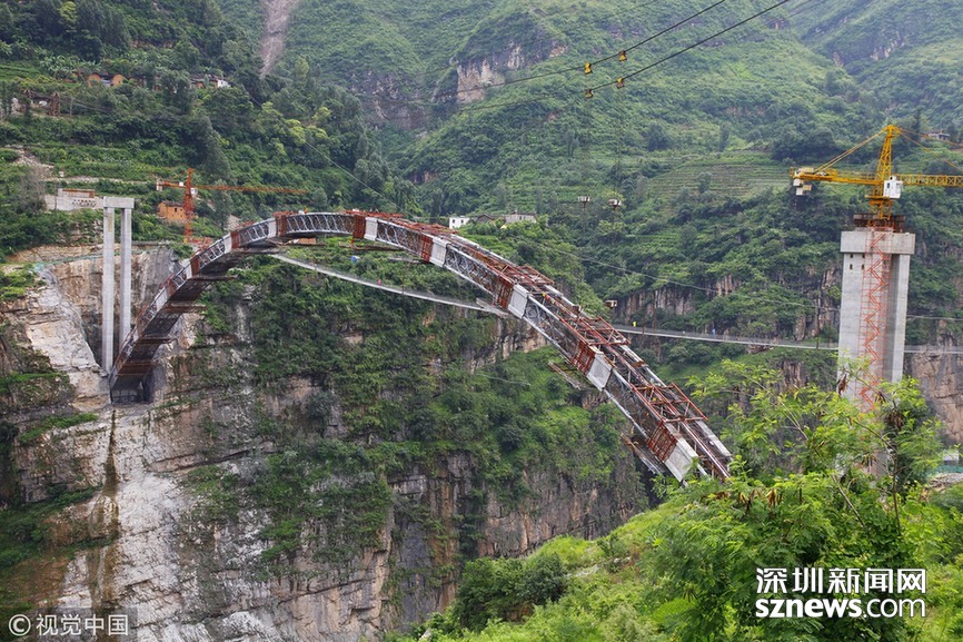 2018年5月30日,云南昭通,鸚哥大橋完成最后一段35米引橋現(xiàn)澆箱梁作業(yè),標志著“鸚哥溜索改橋”主體工程完工,進入最后階段的橋面鋪裝和防護欄施工,預計6月底建成通車。