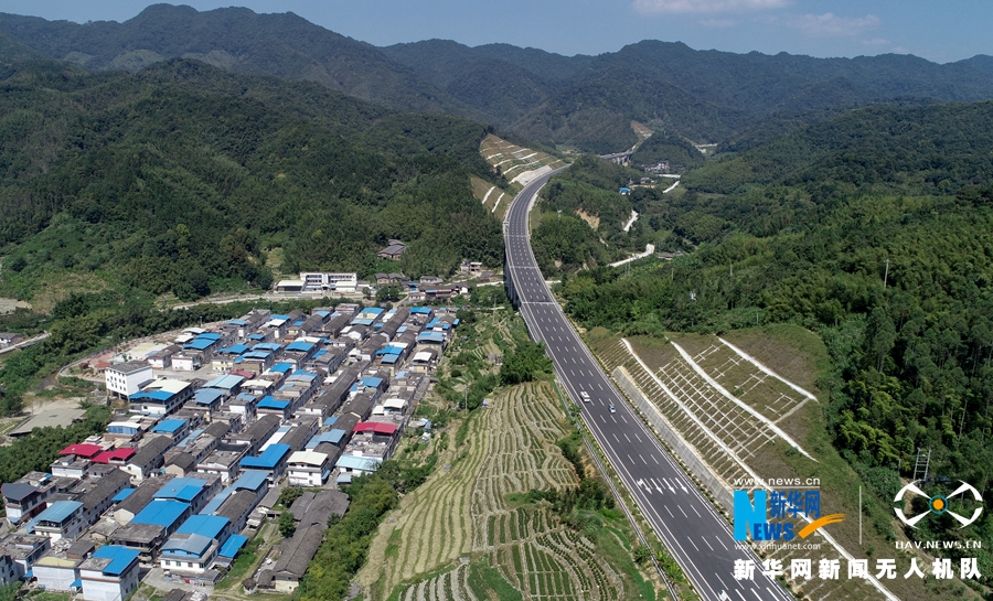 這是改擴(kuò)建工程施工后的廈蓉高速南靖縣和溪路段(無(wú)人機(jī)拍攝)。新華網(wǎng) 肖和勇 攝
