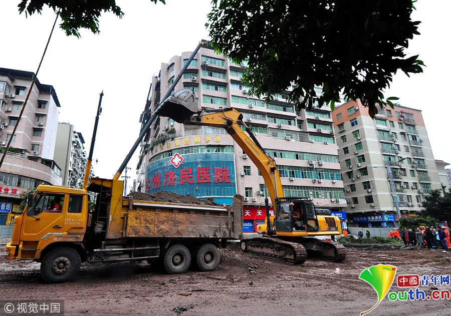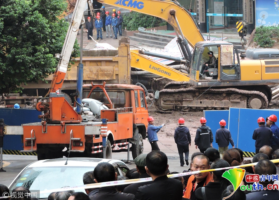 中國(guó)青年網(wǎng)北京10月9日電 2018年10月8日消息,四川達(dá)州。10月8日從四川省達(dá)州市達(dá)川區(qū)委宣傳部獲悉,7日14時(shí)30分左右,達(dá)川區(qū)東環(huán)南路103號(hào)人行道路面發(fā)生塌陷險(xiǎn)情,經(jīng)調(diào)取視頻監(jiān)控和走訪(fǎng)周邊群眾,救援人員初步判斷疑似有4人掉入坑中。圖片作者:視覺(jué)中國(guó)