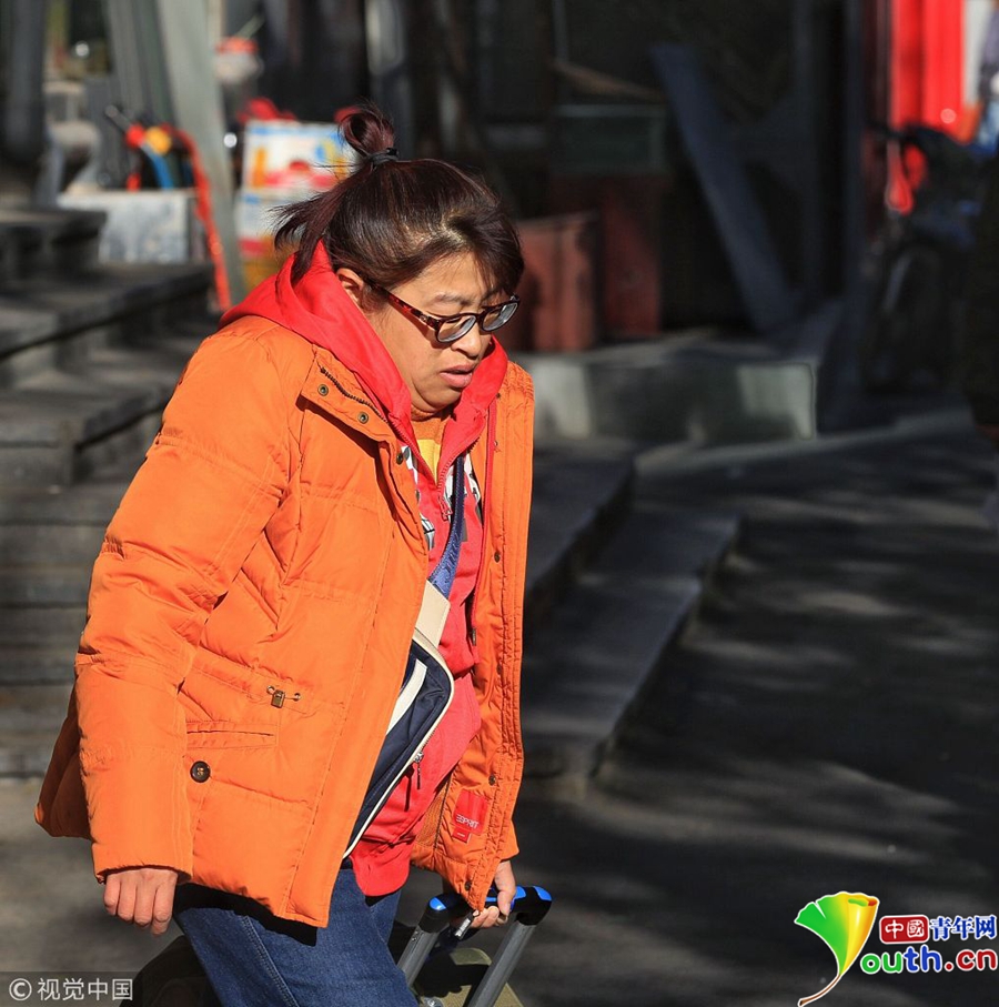北京冷空氣來襲 游客紛紛著秋冬裝游 ...