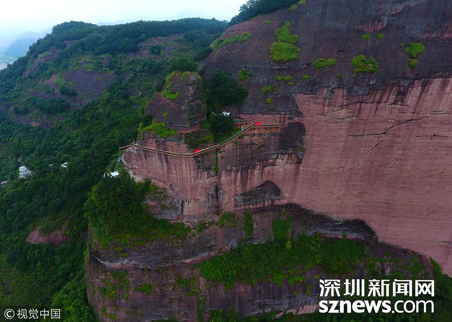 深圳新聞網(wǎng)訊 武義縣大紅巖景區(qū)在227500平方懸崖上建造的玻璃桟道,通過(guò)有關(guān)部驗(yàn)收,10月1日將開放接待游客。武義縣大紅巖是國(guó)家級(jí)風(fēng)景名勝區(qū),今年景區(qū)利用長(zhǎng)650米、高350米的懸崖峭壁建造玻璃桟道,為景區(qū)又增添了一道壯觀的景點(diǎn)。