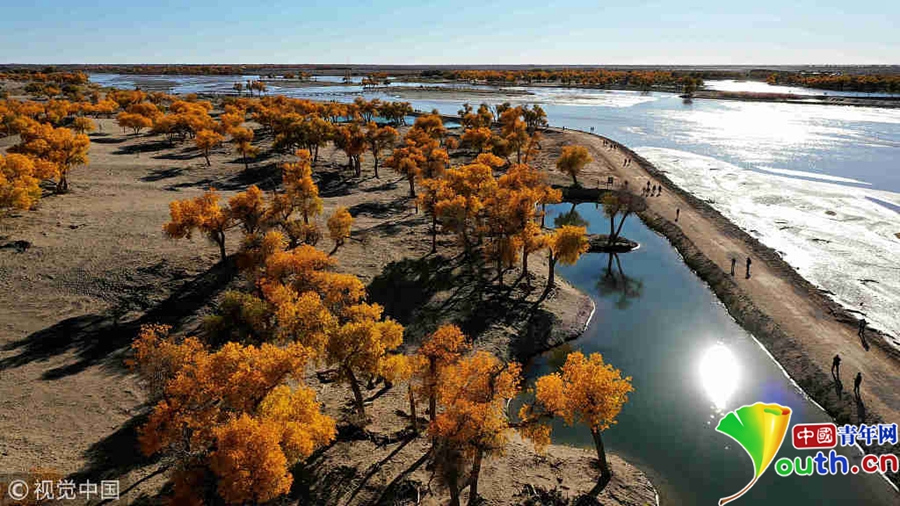 中國(guó)青年網(wǎng)北京10月9日電 2018年10月7日至8日,內(nèi)蒙古自治區(qū)阿拉善盟額濟(jì)納旗,地處巴丹吉林沙漠。額濟(jì)納河兩岸壯觀的胡楊林堪稱大漠的一顆綠色明珠,每年深秋時(shí)節(jié)的第一場(chǎng)秋霜過后,大片的胡楊樹葉由綠變黃,一眼望去,陽光下金色的樹葉襯著湛藍(lán)的天空于風(fēng)中婆娑起舞,鮮明的影調(diào),亮麗的色彩,令人流連忘返。