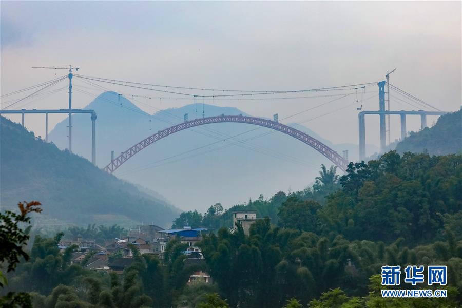 9月12日使用無人機拍攝的大小井特大橋。 目前,橫跨在貴州省羅甸縣大井河上的大小井特大橋建設進入沖刺階段。大小井特大橋全長1.5公里,主跨450米,是世界最大跨徑上承式鋼管混凝土拱橋。據(jù)了解,該橋是平塘至羅甸高速公路關鍵性工程,對打通貴州“斷頭路”,助推滇黔桂石漠化片區(qū)脫貧攻堅具有重要意義。 新華社記者劉續(xù)攝