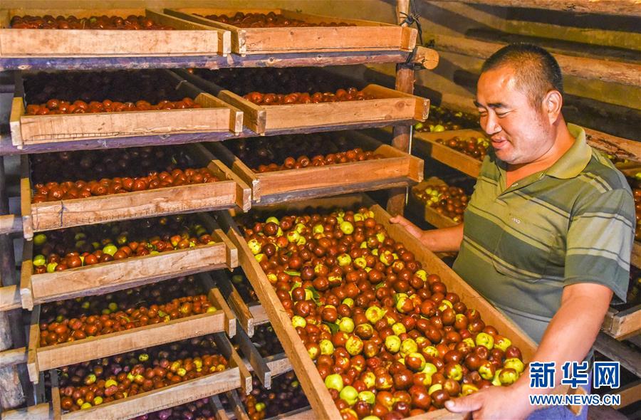 9月22日,河北省棗強(qiáng)縣棗強(qiáng)鎮(zhèn)孟家莊村的棗農(nóng)將紅棗放進(jìn)蒸房。 近日,河北省棗強(qiáng)縣的2000多畝棗園迎來收獲季,棗農(nóng)們搶抓農(nóng)時,采摘、篩選、晾曬紅棗,樂享秋收的快樂。 新華社記者李曉果攝