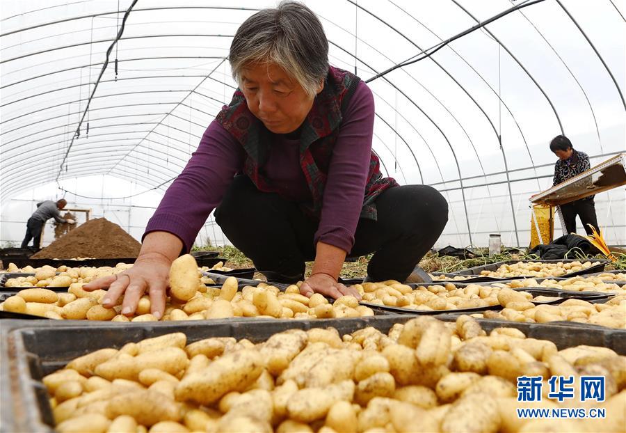 9月23日,張北縣小二臺鎮(zhèn)一家馬鈴薯育種中心的工人在大棚內(nèi)整理剛收獲的脫毒微型薯。 近年來,地處壩上地區(qū)的河北省張北縣因地制宜,積極推進(jìn)馬鈴薯產(chǎn)業(yè)化發(fā)展,形成了馬鈴薯繁種育種、商品薯種植、倉儲、加工為一體的產(chǎn)業(yè)鏈,帶動農(nóng)民增收致富。 新華社記者楊世堯攝