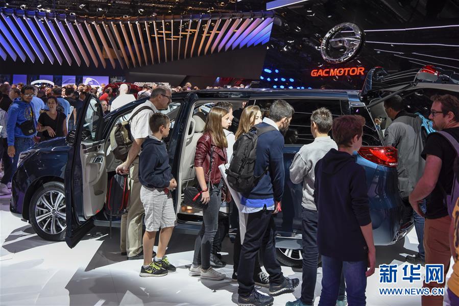 10月14日,在法國巴黎國際車展上,人們參觀廣汽傳祺品牌展臺。 當日,2018年巴黎國際車展閉幕。據主辦方統(tǒng)計,超過100萬人次參觀了本屆車展。 新華社記者 陳益宸 攝