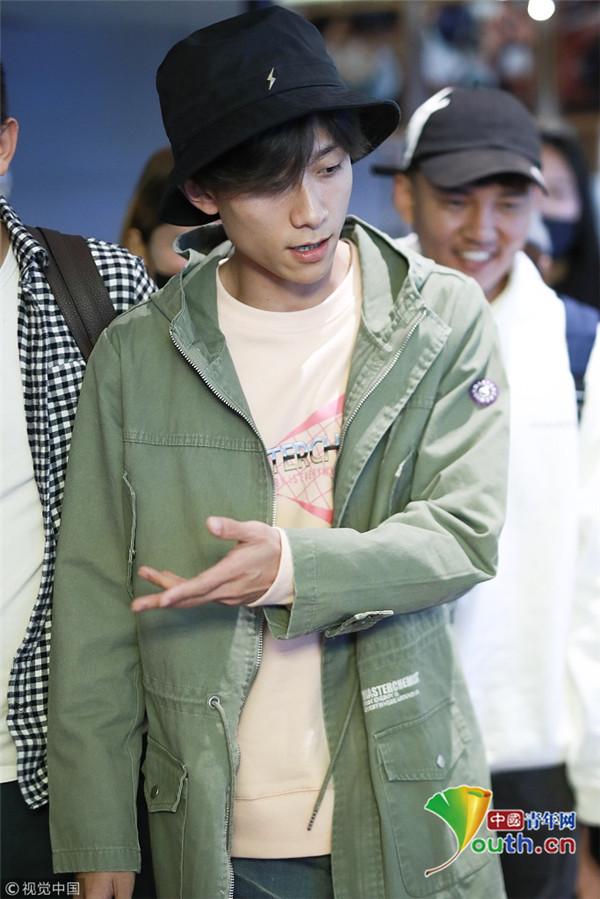 2018年10月14日,上海,張一山抵達上海機場。張一山戴漁夫帽眼袋嚴重瞬間老十歲, 用手擋臉似不愿上鏡。