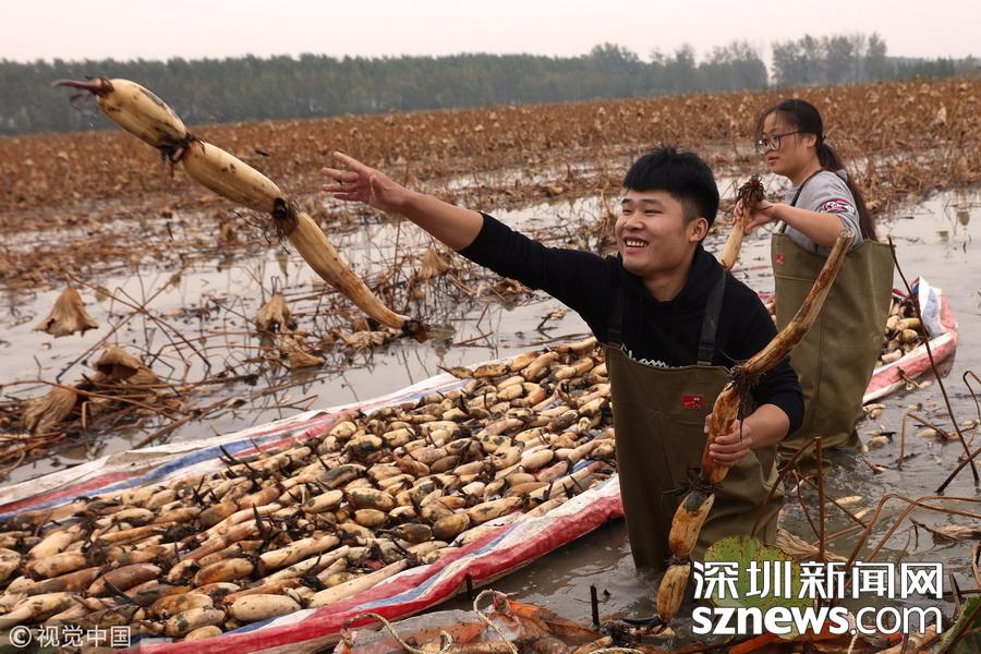 藕農(nóng)泥中“掘金” 初秋時節(jié)采藕忙