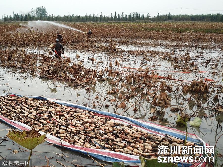 深圳新聞網(wǎng)訊 日前,樊城區(qū)牛首鎮(zhèn)淺水藕種植基地內(nèi)一片繁忙,當(dāng)?shù)嘏恨r(nóng)利用晴好天氣抓緊采收淺水藕,供應(yīng)市場。近幾年,牛首鎮(zhèn)利用水資源優(yōu)勢,大力發(fā)展淺水藕種植,成為農(nóng)民增收新渠道。