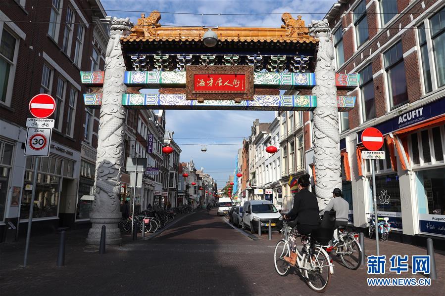 10月13日,在荷蘭海牙,人們經(jīng)過唐人街的牌坊。