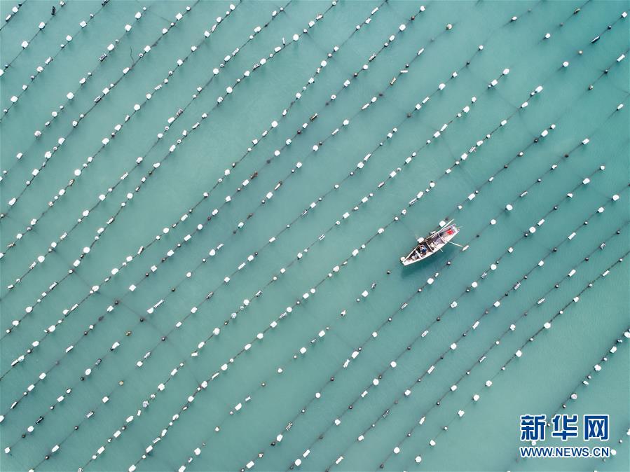 8月18日,南麂島馬祖岙海灣內(nèi),養(yǎng)殖戶乘船在貽貝養(yǎng)殖區(qū)內(nèi)作業(yè)(無人機拍攝)。進入8月,浙江省溫州市平陽縣南麂鎮(zhèn)海域上大片的大黃魚、貽貝等特色海產(chǎn)品養(yǎng)殖區(qū)域迎來豐收季節(jié),養(yǎng)殖戶們駕駛漁船在養(yǎng)殖區(qū)海域進行打撈收獲,在碧海藍天下構成了一幅“海上牧場”的美麗豐收景象。近年來,南麂鎮(zhèn)政府引導漁民養(yǎng)殖戶充分發(fā)揮“靠海吃海”的資源優(yōu)勢,大力發(fā)展海洋養(yǎng)殖經(jīng)濟和海島旅游經(jīng)濟,實現(xiàn)了南麂由“生態(tài)美”向“產(chǎn)業(yè)美”,“產(chǎn)業(yè)美”向“經(jīng)濟美”的轉(zhuǎn)變。同時該鎮(zhèn)堅持以大黃魚、貽貝等為特色產(chǎn)業(yè)支撐,精準發(fā)展高效海洋養(yǎng)殖業(yè),重點培養(yǎng)一批新型職業(yè)漁民,依靠專業(yè)技術支持,實現(xiàn)深海仿生養(yǎng)殖,讓好生態(tài)造就好品質(zhì),重點打造南麂養(yǎng)殖品牌,組建營銷網(wǎng)絡,拓展特色海產(chǎn)品市場。新華社記者 徐昱攝