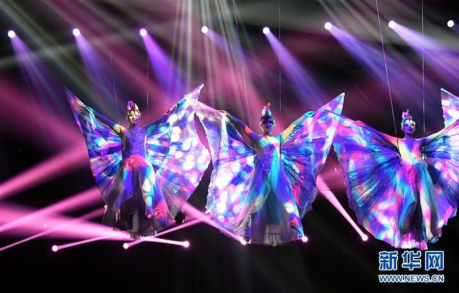 10月16日,演員在濮陽國際雜技藝術(shù)節(jié)上表演雜技《如蝶飛舞》。新華社記者 朱祥 攝