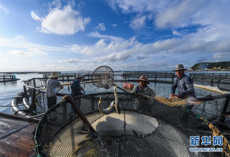 8月18日,南麂島海域內(nèi)的“海上牧場”養(yǎng)殖區(qū)內(nèi),漁民正捕撈大黃魚,處于仿生養(yǎng)殖環(huán)境的大黃魚需要生長2至3年。進(jìn)入8月,浙江省溫州市平陽縣南麂鎮(zhèn)海域上大片的大黃魚、貽貝等特色海產(chǎn)品養(yǎng)殖區(qū)域迎來豐收季節(jié),養(yǎng)殖戶們駕駛漁船在養(yǎng)殖區(qū)海域進(jìn)行打撈收獲,在碧海藍(lán)天下構(gòu)成了一幅“海上牧場”的美麗豐收景象。近年來,南麂鎮(zhèn)政府引導(dǎo)漁民養(yǎng)殖戶充分發(fā)揮“靠海吃海”的資源優(yōu)勢,大力發(fā)展海洋養(yǎng)殖經(jīng)濟(jì)和海島旅游經(jīng)濟(jì),實(shí)現(xiàn)了南麂由“生態(tài)美”向“產(chǎn)業(yè)美”,“產(chǎn)業(yè)美”向“經(jīng)濟(jì)美”的轉(zhuǎn)變。同時(shí)該鎮(zhèn)堅(jiān)持以大黃魚、貽貝等為特色產(chǎn)業(yè)支撐,精準(zhǔn)發(fā)展高效海洋養(yǎng)殖業(yè),重點(diǎn)培養(yǎng)一批新型職業(yè)漁民,依靠專業(yè)技術(shù)支持,實(shí)現(xiàn)深海仿生養(yǎng)殖,讓好生態(tài)造就好品質(zhì),重點(diǎn)打造南麂養(yǎng)殖品牌,組建營銷網(wǎng)絡(luò),拓展特色海產(chǎn)品市場。新華社記者 徐昱攝