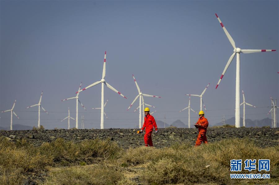 在新疆烏魯木齊達(dá)坂城風(fēng)力發(fā)電場(chǎng),工作人員查看風(fēng)力發(fā)電設(shè)備(2018年9月18日攝)。今年以來(lái),新疆穩(wěn)步推進(jìn)新能源參與“疆電外送”、擴(kuò)大與燃煤自備電廠調(diào)峰替代交易等多種電力交易方式,著力破解“綠色電力”上網(wǎng)難題,新能源發(fā)電量同比增加近13個(gè)百分點(diǎn),而棄電量和棄電比實(shí)現(xiàn)“雙降”,綠色發(fā)展理念進(jìn)一步落實(shí)。新疆是我國(guó)重要的能源供應(yīng)和儲(chǔ)備基地,風(fēng)能、太陽(yáng)能儲(chǔ)量豐富。近年來(lái),新疆新能源裝機(jī)總量突破2700萬(wàn)千瓦,規(guī)模和占比均居全國(guó)前列。新華社記者 趙戈 攝