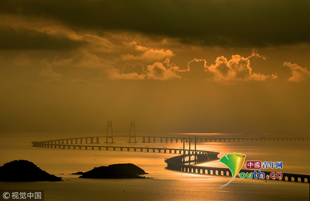 “超級(jí)工程”港珠澳大橋?qū)⒂?4日上午9時(shí)正式通車(chē),一波美圖先睹為快。黃昆震 攝 圖片來(lái)源:視覺(jué)中國(guó)