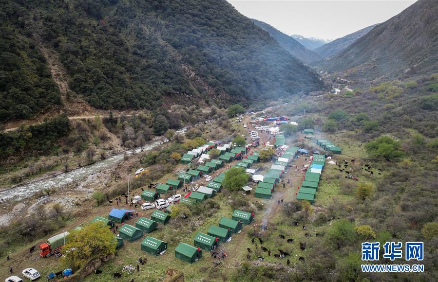 10月19日拍攝的在米林縣派鎮(zhèn)達(dá)林村搭建的安置點。 記者從西藏自治區(qū)林芝加拉村雅魯藏布江堰塞湖災(zāi)情應(yīng)急搶險工作第二場新聞發(fā)布會上獲悉,19日13時30分,雅魯藏布江米林縣堰塞體上游水位超過堰塞體,開始自然過流,上游水位正在緩慢下降。目前,各項搶險救援工作正在有序開展。 新華社記者 普布扎西 攝