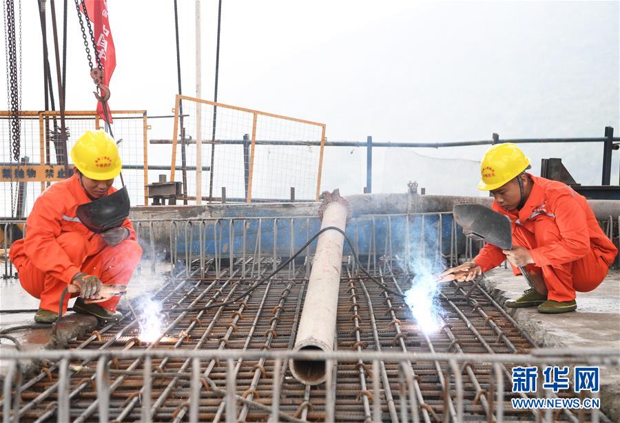 10月23日,在重慶涪陵,施工人員在渝懷鐵路涪秀二線(xiàn)重點(diǎn)工程——烏江右線(xiàn)大橋主跨合龍現(xiàn)場(chǎng)作業(yè)。 當(dāng)日,由中鐵四局承建的渝懷鐵路涪秀二線(xiàn)重點(diǎn)工程——烏江右線(xiàn)大橋主跨成功合龍,標(biāo)志著大橋主體工程全部順利結(jié)束。烏江右線(xiàn)大橋項(xiàng)目全程460.1米,主跨192米,跨越烏江和319國(guó)道。在兩年多的建設(shè)過(guò)程中,施工人員攻克了“不等高墩”“不對(duì)稱(chēng)邊跨”“邊跨入隧”等多個(gè)技術(shù)難題。 新華社記者王全超攝