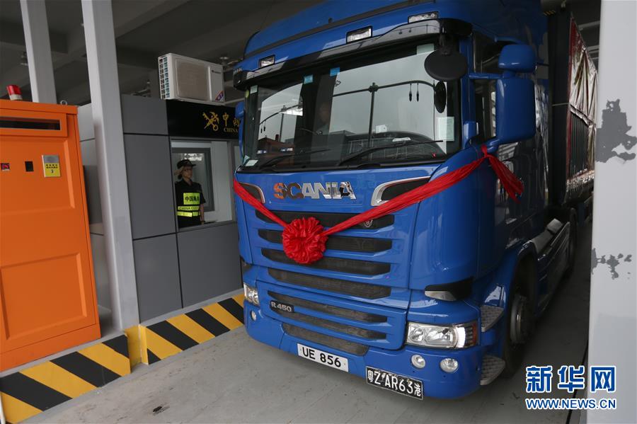 10月24日,港珠澳大橋珠海公路口岸通車首票出口貨物抵達一站式貨車出境驗放通道。當(dāng)日9時,港珠澳大橋正式通車。 新華社記者張加揚攝