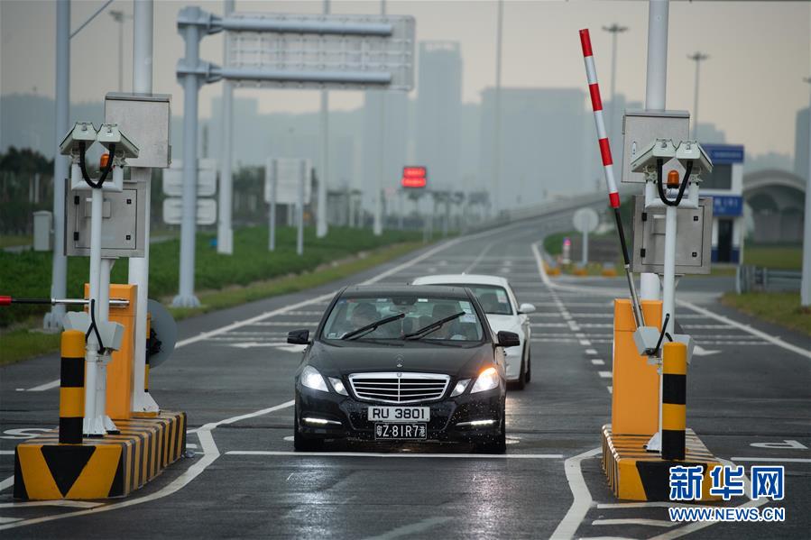 10月24日,首輛私家車在澳門口岸離境車道上通關(guān)。當(dāng)日9時,港珠澳大橋正式通車。 新華社記者張金加攝
