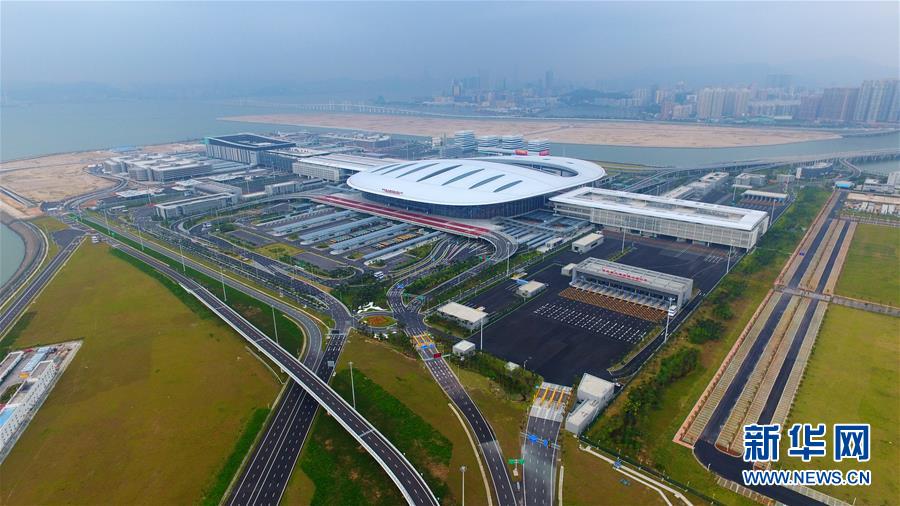 2018年10月20日無人機拍攝的港珠澳大橋珠海公路口岸。 金秋十月,伶仃洋上海天一色、潮聲陣陣,依傍著這片中國南海水域的城市群迎來深具意義的一天。 10月23日上午,港珠澳大橋開通儀式在廣東珠海舉行,中共中央總書記、國家主席、中央軍委主席習(xí)近平出席儀式,宣布大橋正式開通。 碧波之上,一橋飛架香港、澳門、珠海三地,以氣貫長虹的“中國跨度”,飛越滄海百年的歷史風(fēng)云,展現(xiàn)當(dāng)代中國的雄健風(fēng)采。 新華社記者梁旭攝