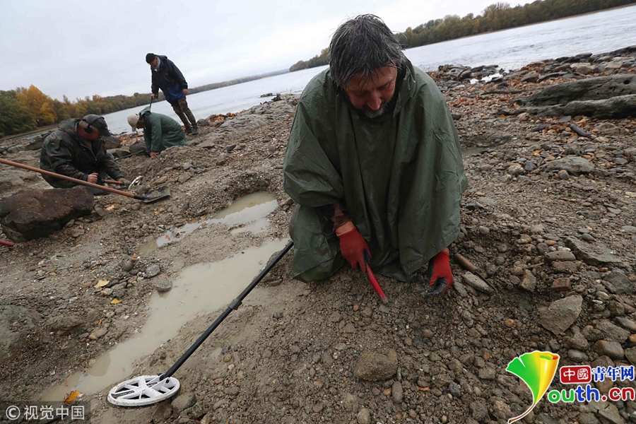 多瑙河水位下降現(xiàn)“寶藏” 考古人員發(fā)掘出大批古錢幣