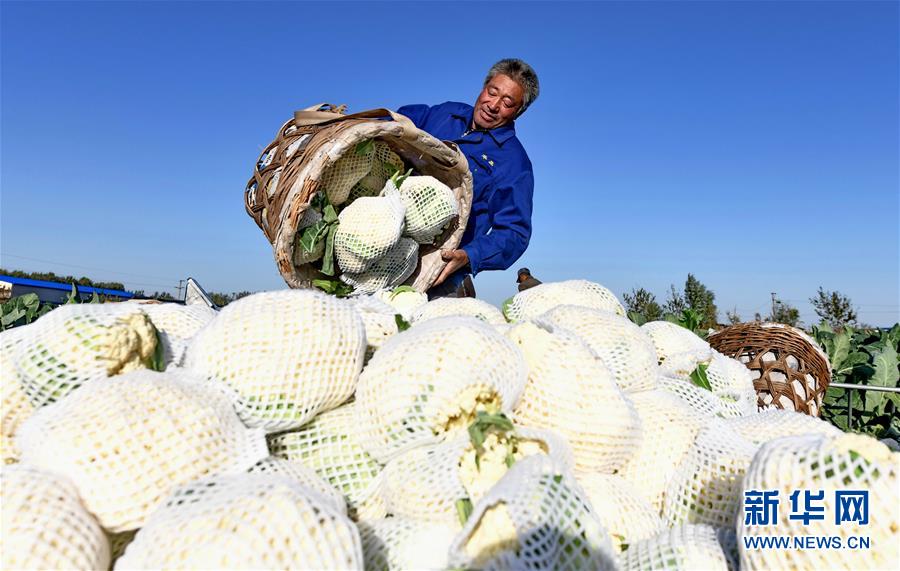 10月29日,樂亭縣馬頭營(yíng)鎮(zhèn)馬頭營(yíng)村的農(nóng)民在收獲菜花。 新華社記者楊世堯攝