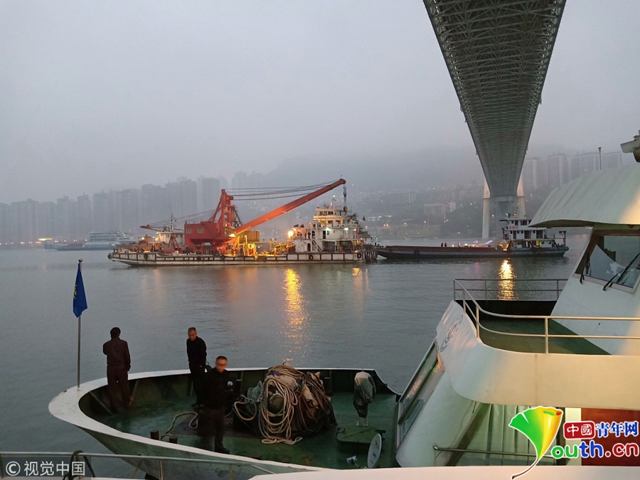 2018年10月30日,重慶,救援現(xiàn)場(chǎng)。10月28日上午10時(shí)8分,一輛公交車在重慶市萬州區(qū)長(zhǎng)江二橋墜入江中。目前打撈工作有何進(jìn)展?記者采訪了交通運(yùn)輸部上海打撈局救撈工程船隊(duì)隊(duì)長(zhǎng)周東榮。
