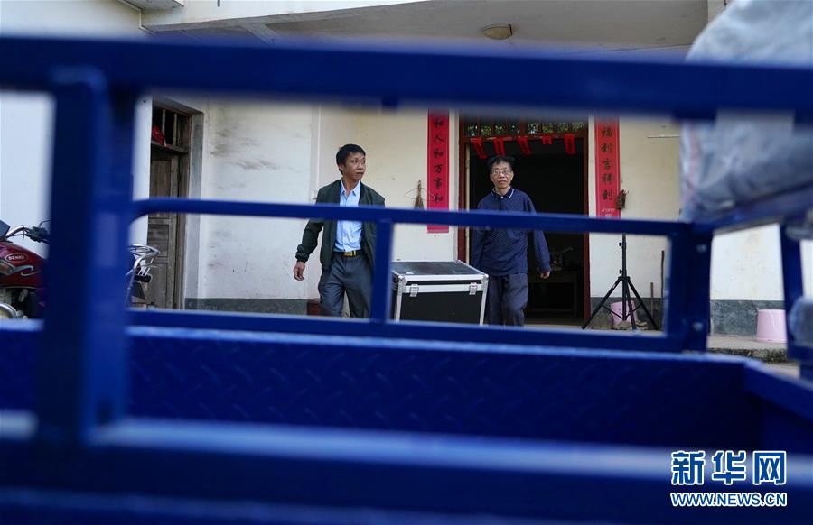 10月30日,曾紀(jì)連在寬田鄉(xiāng)山下村為當(dāng)?shù)匕傩辗庞畴娪?。新華社記者 胡晨歡攝