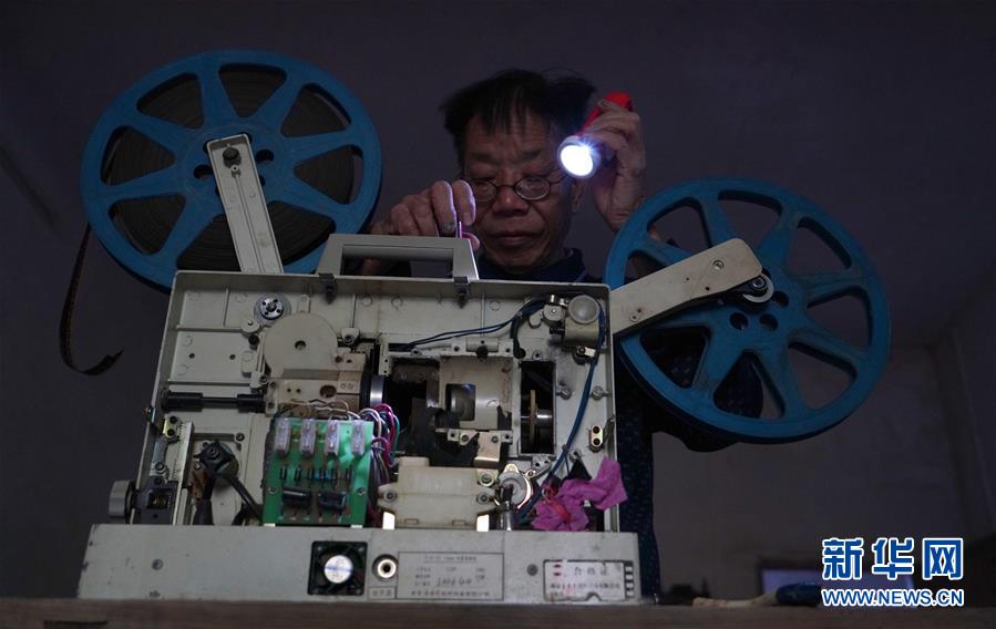 今年69歲的曾紀(jì)連是江西省于都縣寬田鄉(xiāng)的一名電影放映員。雖早已退休,他依然放不下電影放映這份工作,平均每月為村民放映電影達(dá)20場(次)。