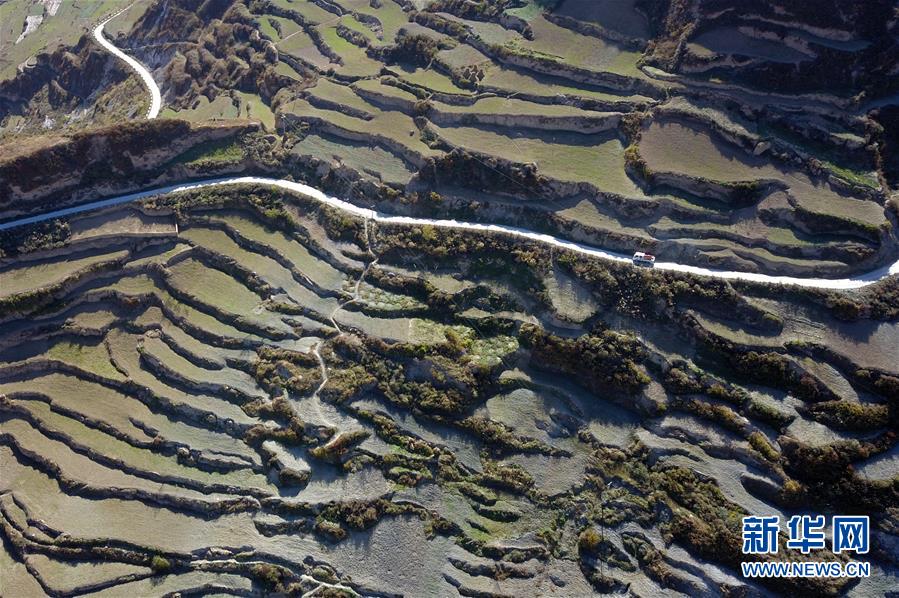 這是在隴南市武都區(qū)拍攝的“新坪埡”一角(10月31日無人機(jī)拍攝)。新華社記者 范培珅攝