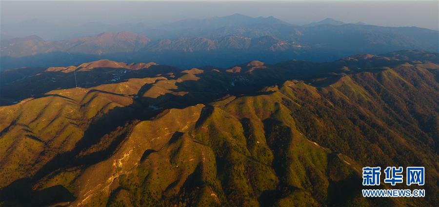 夕陽(yáng)下的摩天嶺草場(chǎng)(11月2日無人機(jī)拍攝)。金秋時(shí)節(jié),廣西融水苗族自治縣桿洞鄉(xiāng)堯告村的摩天嶺草場(chǎng)天高云淡,景色迷人。新華社記者周華攝