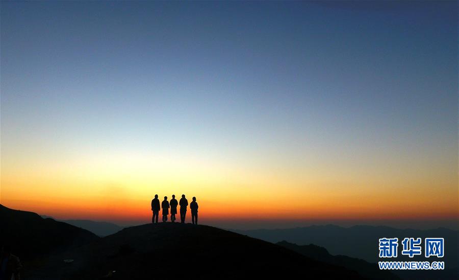 11月2日,游客在摩天嶺草場(chǎng)欣賞夕陽(yáng)景色(無人機(jī)拍攝)。金秋時(shí)節(jié),廣西融水苗族自治縣桿洞鄉(xiāng)堯告村的摩天嶺草場(chǎng)天高云淡,景色迷人。新華社記者周華攝